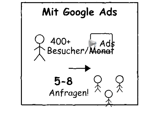 Google Ads verstärkt, was schon funktioniert. Wenn Ihre Website bereits ein paar Besucher anzieht und erste Anfragen bekommt, dann kann Ads wie ein Verstärker wirken – mehr Reichweite, mehr Klicks, mehr Kunden